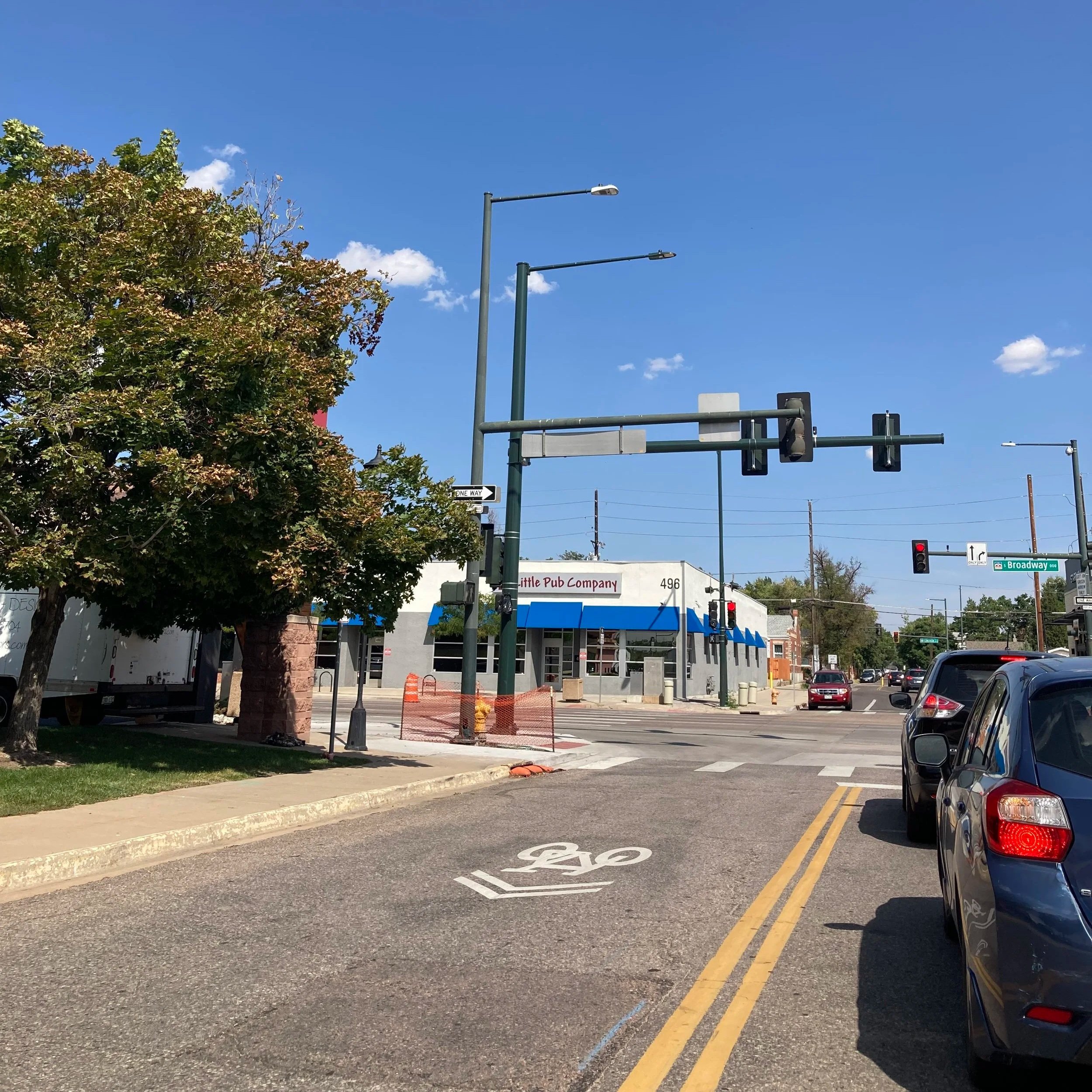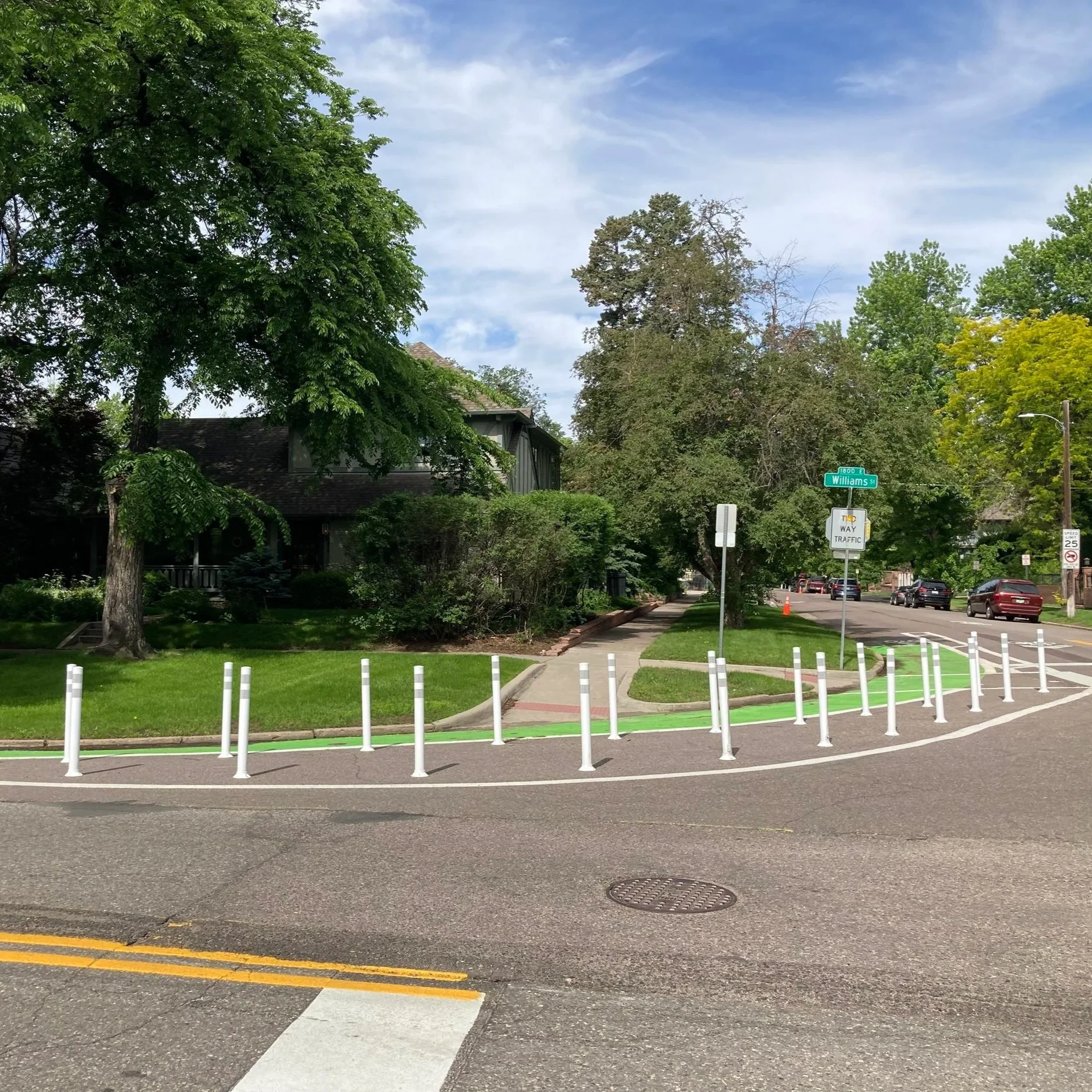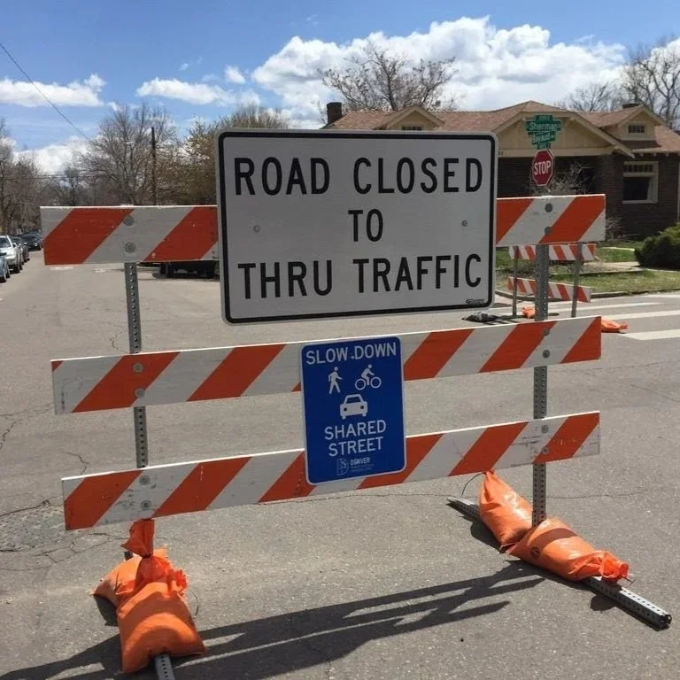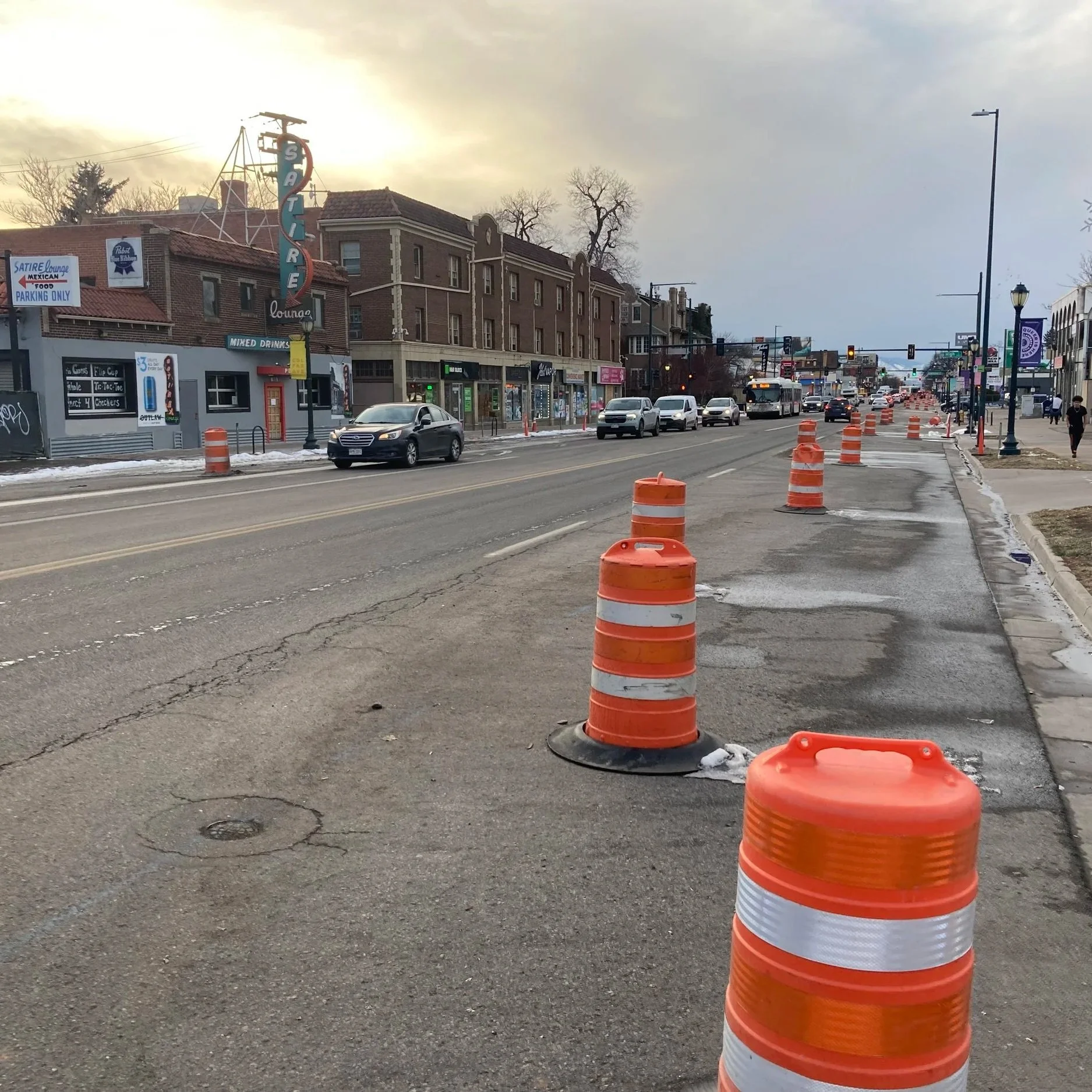 Orange barrels on Colfax Ave in Denver provided a validated learning of the traffic calming results of a lane diet.